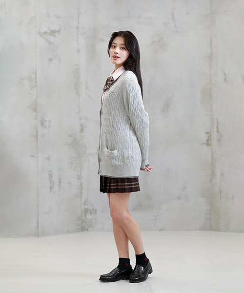 男女兼用ケーブルカーディガン(ライトグレー) 価格 7,920円(税込) Mサイズ着用