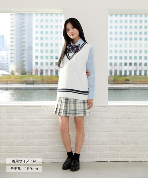 男女兼用ラインベスト(ホワイト×ネイビー) 価格 5,940円(税込) Mサイズ着用